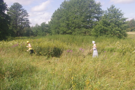 Druhý ročník našeho tábora se odehrával po celou dobu na Habrově. Naším cílem bylo pokosit louky ve svahu, které nejsou přístupné pro strojové sekání, louky za tratí, severní louky a vykosením kopřiv na dně bývalého rybníka za tůňkou.