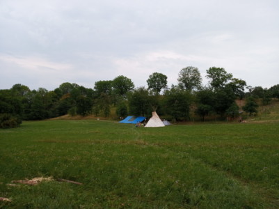 Léto roku 2020 bylo poměrně dost studené a mokré. Proto jsme hojně využívali teepee, které se během trvání našeho tábora stalo vítaným útočištěm a postupně se zútulňovalo, jak jej účastníci zdobili předměty z programu.